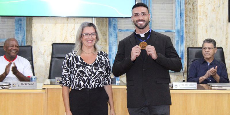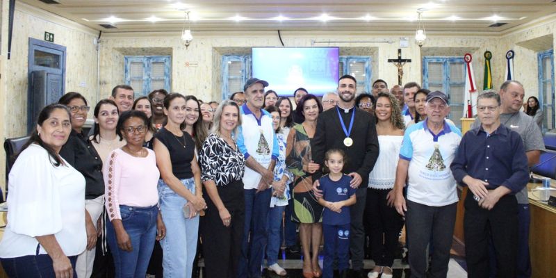A Câmara Municipal de Varginha realizou, na noite de terça-feira (14), uma solenidade especial para a entrega da Comenda do Mérito Eclesiástico ao Padre João Paulo Gonçalves de Carvalho, da Paróquia Nossa Senhora Aparecida.